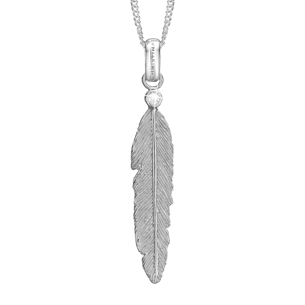 Sparkling Feather Pendant - Silver